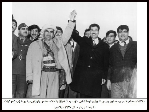 در اوایل دهۀ 50 و به دنبال درگیریهای ایران با عراق بر سر اروندرود، دولت عراق مجبور شد با امضا توافقنامه الجزایر به خواستهای دولت ایران ـ و آمریکا ـ تن دهد. در نتیجۀ این معاملۀ دولتها، بارزانی (به همراه صدهزار آواره کُرد) مجبور به ترک عراق و پناه آوردن به شاه ایران شد. مصطفی بارزانی در مصاحبهای که در کیهانهوایی مورخ 20 اردیبهشت 1354 چاپ شد، میگوید: «فکر نمیکنم هرگز به عراق بازگردم… ما در ایران زیر سایۀ شاهنشاه، رهبر تمامی آریانژادها، به احترام و آسودگی زندگی میکنیم.»