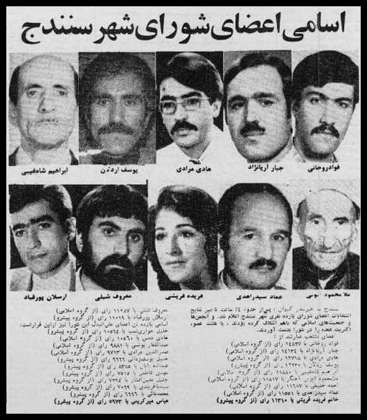 ـ اسامی یازده تن اعضای شورای شهر سنندج به ترتیب تعداد آراء عبارتاند از: